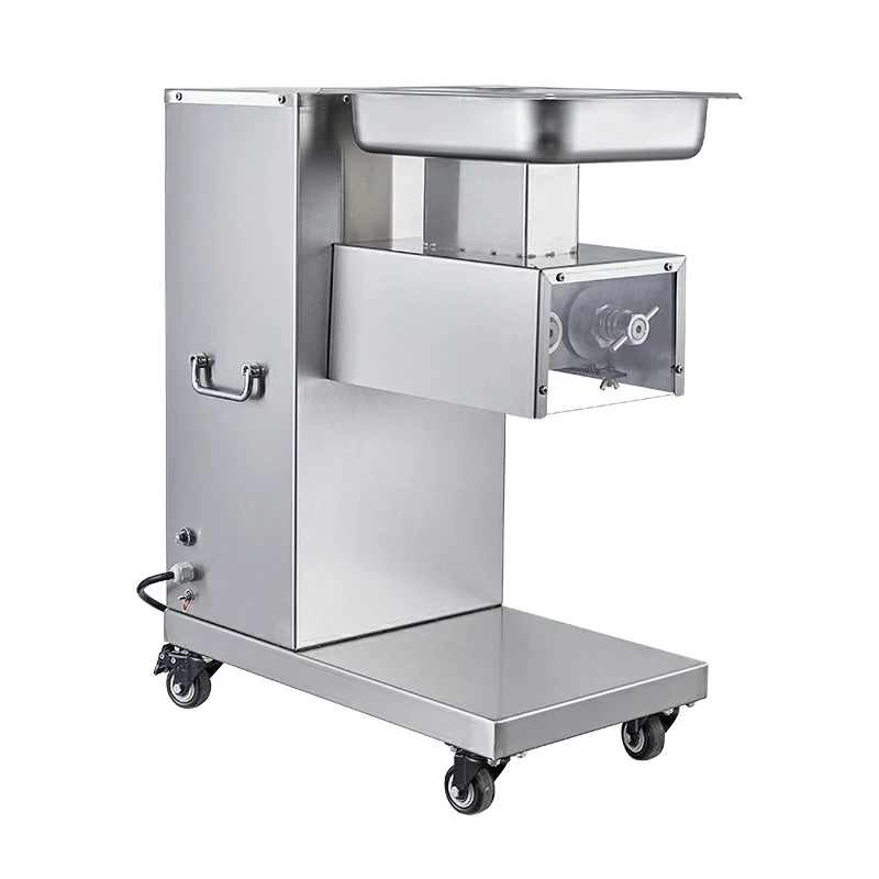 Stainless steel body, Machine body all made of stainless steel 201, fashionable and professional, sturdy and durable Built-in knife set, sharp blade set, cutting meat without jamming the knife One-button switch, easy to operate, waterproof design, safer to use Safety guard net, guard net is installed at the feed inlet, meat cutting protection is more intimate.