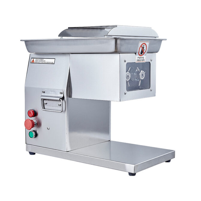 The meat cutting machine can cut meat slices and shredded meat. It adopts a double hob structure. It has the advantages of compact structure, beautiful appearance, simple operation, high efficiency, low power consumption, easy cleaning and maintenance, sanitation, and good meat cutting effect. It is widely used in schools, canteens, hotels, guesthouses, institutions, etc. This machine can only cut fresh meat without bone
